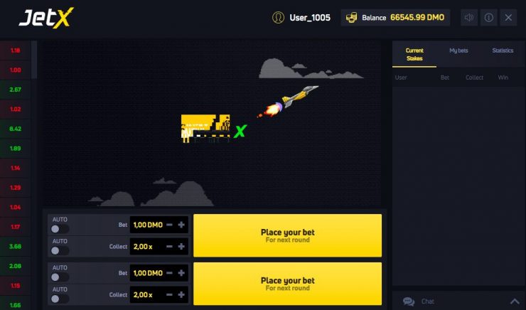 Dans Jet X, un nouveau jet décolle presque toutes les 15 secondes, et ce, sans s’arrêter. Cela signifie que vous pouvez vous connecter à l’interface du jeu à tout moment pour tenter votre chance. Pour ce faire, vous devez placer une mise initiale avant le décollage en utilisant les boutons situés en bas de l’interface. Définissez le montant que vous souhaitez parier et confirmez avant que le jet ne décolle.