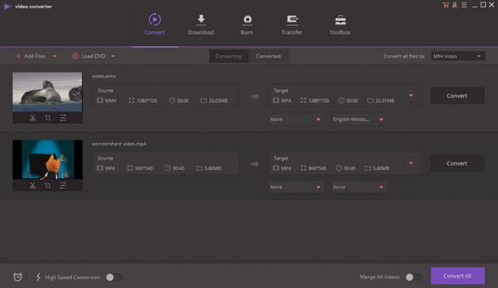 Wondershare Video Converter est à coup sûr le meilleur convertisseur de vidéo YouTube (à lire : créer une chaine YouTube !). Disponible à la fois sur Mac et sur windows, ce logiciel prend en charge toutes les vidéos provenant de la plateforme de partage de vidéos. En effet, avec Wondershare Video Converter, vous pouvez convertir une vidéo MP4 en plus de 1000 formats, le tout à une vitesse impressionnante (il est en moyenne 30 fois plus rapide que n’importe quel autre convertisseur). Tout en convertissant vos vidéos, vous pouvez également les éditer à travers l’utilisation de rognage, de coupures,… Ce logiciel supporte les vidéos UHD 4K et vous permet le téléchargement vidéo intelligent en ligne.