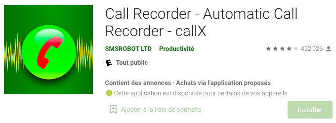 [su_button url= »https://play.google.com/store/apps/details?id=com.smsrobot.callrecorder&hl=fr » target= »blank » style= »flat » size= »6″ center= »yes »]Télécharger maintenant [/su_button]